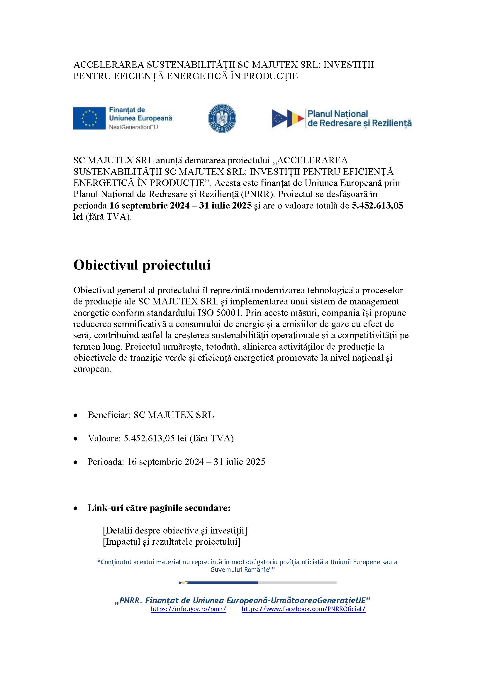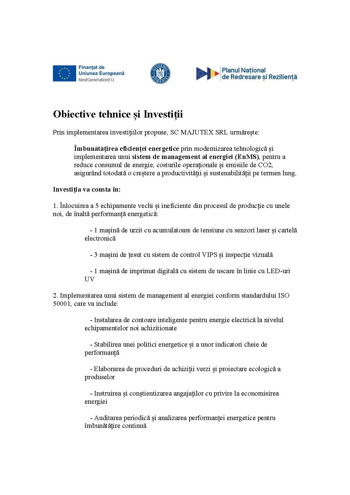 Prin implementarea investițiilor propuse, SC MAJUTEX SRL urmărește:
